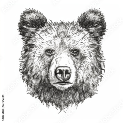 Detailed Bear Head Illustration in Black and White - Grizzly Bear Art Drawing for Wildlife Lovers and Nature Enthusiasts