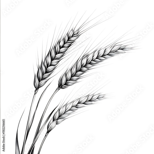 wheat, wheatfield, grain, agriculture, nature, botanical, plant, illustration, drawing, black-and-white, monochrome, line art, detailed, elegant, artistic, vintage, organic, food, healthy, harvest, farm, rural, countryside, design element, print, poster, background, wallpaper, template, vector, graphic, seasonal, harvesting, farming, closeup, still life, minimalist, graphic design, food photography, logo design, greyscale, organic food, health food