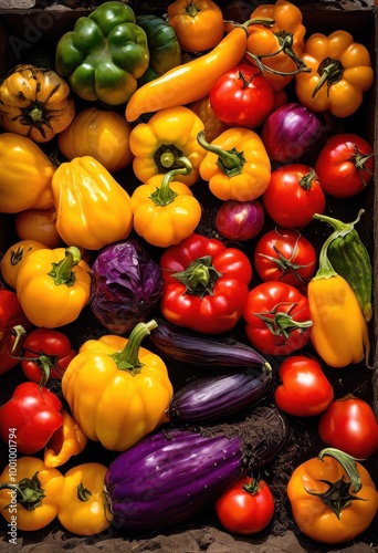 detailed close vibrant vegetables within compost bin showcasing their organic forms, natural, fresh, ripe, raw, produce, crop, tomato, cucumber, carrot