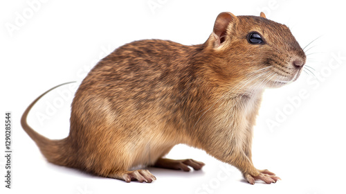 Detailed close-up of a small rodent with whiskers, showcasing its fur texture and posture