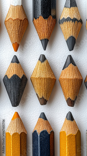 Detailed Close-Up of Sharpened Pencils with Different Textures,up by Nha Vu