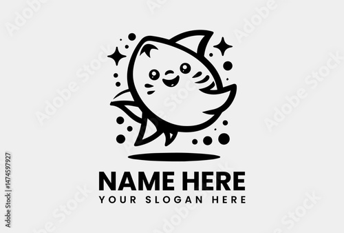 Detailed Cute Shark Silhouette. Playful Marine Motif Vector Logo