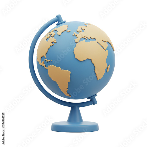 Detailed Globe 3D Rendering Showing Continents and Oceans Geography