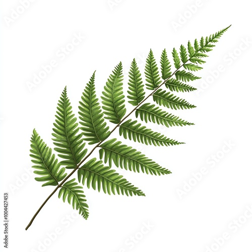 Detailed green fern leaf, white isolated background, perfect for botanical designs.