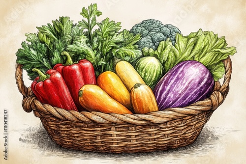 Detailed Hand-Drawn Vegetable Basket Illustration
