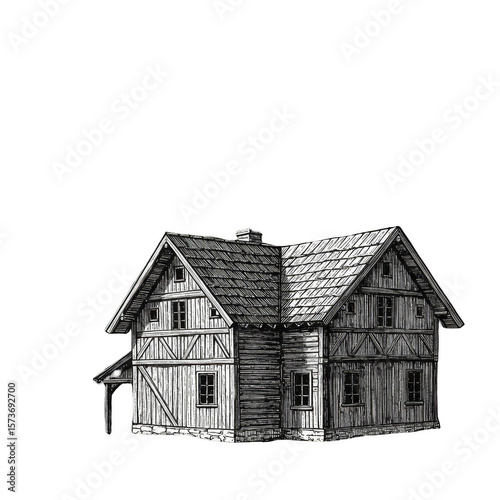 Detailed House Illustration Rustic Wooden Building Architecture Sketch Design