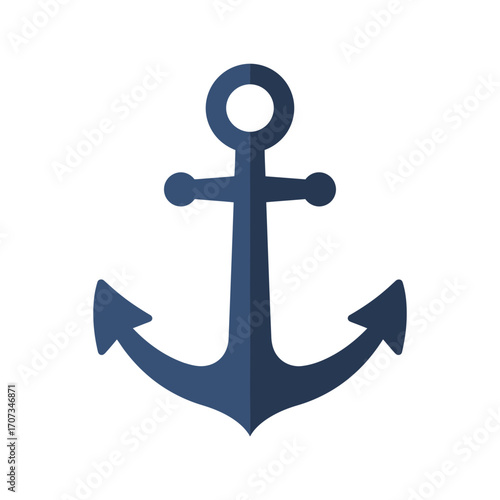 Detailed Illustration of a Classic Blue Anchor on White Background.