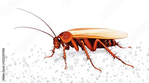 cockroach, insect, pest, bug, illustration, drawing, digital, art, artwork, graphic, design, vector, image, picture, blood-red, brown, pale, wing, leg, antennae, white, speckled, surface, background, detail, realistic, closeup, macro, creature, arthropod, anatomy, wildlife, nature, fauna, animal, organism, invertebrate, body, head, eye, wing, chested, abdomen, segment, hair, texture, granular, isolated, studio