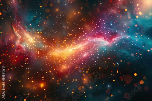 Detailed Image of Dynamic Vibrant Space Scene with Glowing Lights and Galaxies