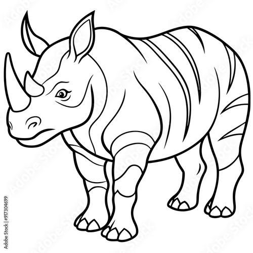 rhino, animal, wildlife, line art, black-and-white, vignetting, drawing, illustration, detailed, outline, nature, african animal, endangered species, mammal, safari, zoo, big five, habitat, wild, strong, powerful, tough, majestic, symbolic, iconic, artistic, minimalistic, graphic, vector, isolated, white background, fauna, beast, conservation, rhino, large, huge, giant, tusk, african wildlife, animal kingdom