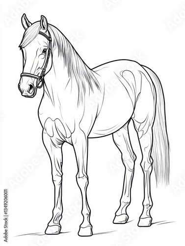 Detailed Line Drawing of a Standing Horse