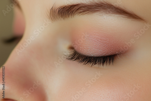 Detailed Macro Image of a Woman's Eyelid, Capturing the Soft Texture of Her Skin and Subtle Eyeshadow with Soft Lighting to Enhance Her Natural Beauty.