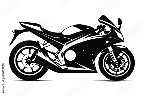 motorcycle, bike, silhouette, illustration, black-and-white, vehicle, transport, transportation, design, modern, fairing, wheel, engine, performance, road, speed, race, racing, motorbike, machine, automotive, motor, cycle, style, graphic, artistic, drawing, icon, symbol, vector, detail, power, fast, rider