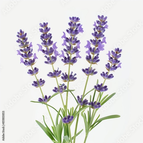 Detailed photo of a lavender plant in full bloom isolated on white background