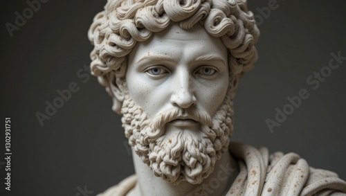 Detailed Portrait of an Ancient Marble Sculpture with Expressive Face and Beard
