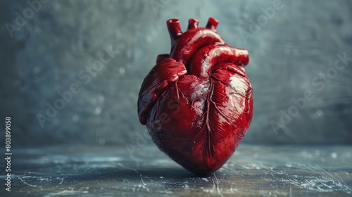 Detailed red human heart anatomy for healthcare and medical concept illustration