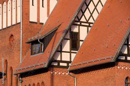 Detailed shot of an old fire department, built in half-timbered style, Berlin, Germany, architecture