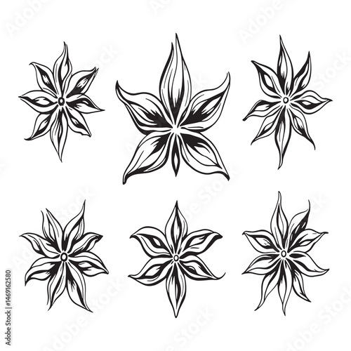 Detailed Star Anise Line Art Vector Design
