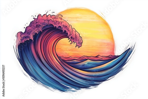 wave, tattoo, sunset, red, orange, yellow, blue, illustration, water, sea, pattern, swirl, curve, art, gradient, shading, artistic, detailed, design, warm, soft, creative, vibrant, aesthetic, centered, dynamic, modern, colourful, isolated, nature, ocean, elegant, harmony, bold, energy, timeless, structured