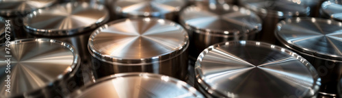 Detailed texture of stainless steel surfaces on plates and pipes showcased in a wellorganized industry warehouse