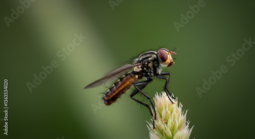 dance, fly, insect, flower, macro, detail, nature, wildlife, arthropod, courtship, pattern, antennae, proboscis, leg, wing, green, background, blossom, bloom, pollination, invertebrate, small, tiny, fragile, hairy, compound, eye, flora, fauna, close, up, plant, beauty, wild, natural, sharpened, studio, shot, animal, micro, nobody
