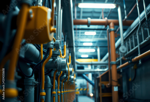 Detailed view of cables and piping systems integral to operations inside an industrial power plant, showcasing energy infrastructure design.