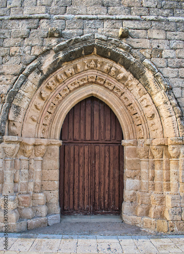 Detalle arco romanico en la iglesia de Santa Maria del Castillo de Castronuño, Valladolid