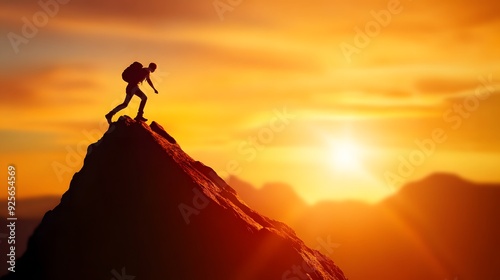 Determined Hiker Ascending Steep Hill with Copy Space, Concept of Adventure and Overcoming Obstacles.