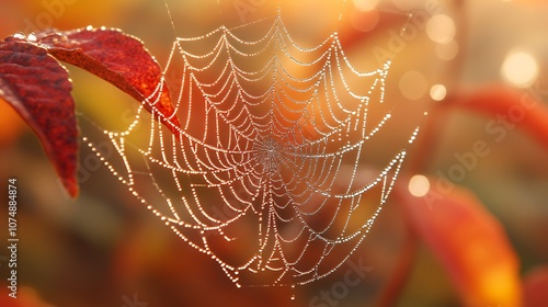 spider's web, web, dew, drop, nature, macro, photo, fall, autumn, morning, sunlight, gold, orange, red, leaf, foliage, background, blurry, close, up, detail, texture, pattern, circular, water, light, natural, beauty, fragile, symmetry, delicate, artistic, organic, bright, vibrant, hours, high-coloured
