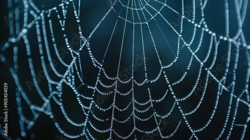 Dewdrops on a spiderweb. Close-up shot of a spiderweb covered in water droplets, creating a mesmerizing pattern of nature's artistry.