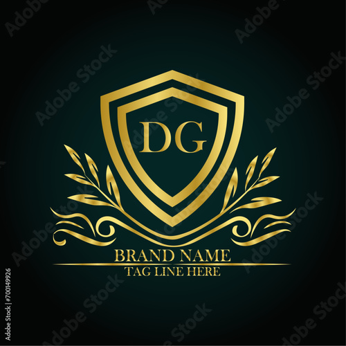 DG luxury letter logo template in gold color. Elegant gold shield icon. Modern vector Royal premium logo template vector