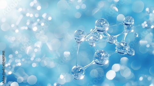 Diagonal DNA molecule and transparent droplets, shallow focus. Biochemistry, modern medicine or genetic research related 3D rendering background