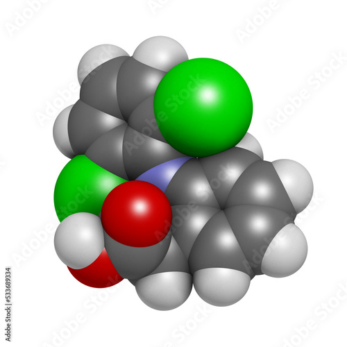 Diclofenac pain and inflammation drug (NSAID), chemical structure.