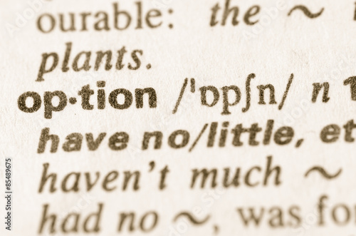 Dictionary definition of word option