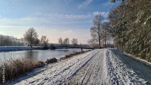 flux, countryside, water, nature, heaven, cloud, lower saxony, home, grass, green, blue, cloud, scenic, environment, waterway, hike, bike, rowing, winter, snow