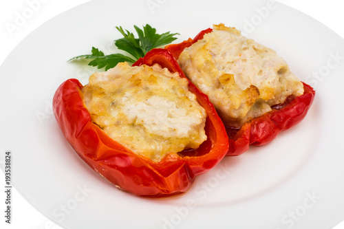 Dietary protein dish. Bulgarian pepper stuffed with meat