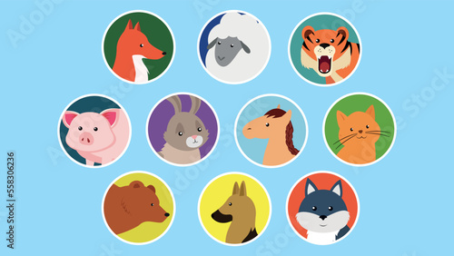 cartoon, icon, set, vector, illustration, symbol, face, people, children, zodiac, icon, collection, character, boy, smile, head, funny, design, children, animal, buttons, fun, dog, holiday, art, branding, preschool, school, study, graphic, man, draw