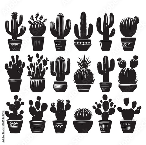 cactus, silhouette, western, collection, set, succulent, wild, botany, dry, plant, desert, graphic, growth, southwest, spine, type, variation, 6, botanical, cut-out, different, drawing, sharp, arid, barrel