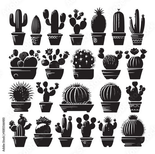 cactus, silhouette, western, collection, set, succulent, wild, botany, dry, plant, desert, graphic, growth, southwest, spine, type, variation, 6, botanical, cut-out, different, drawing, sharp, arid, barrel