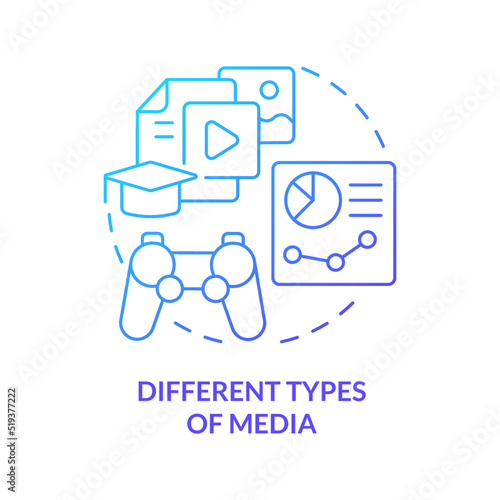 Different types of media blue gradient concept icon. Microlearning characteristic abstract idea thin line illustration. Media formats. Isolated outline drawing. Myriad Pro-Bold font used