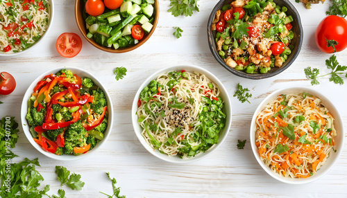 different, vegetable, noodle, bowl, white, wooden, table, flat, lay, vegetarian, dish, pasta, healthy, nourishment, colourful, variety, courgette, carrot, fresh, raw, diet, wellness, fitness, low, carb, gluten, free, rainbow, vibrant, cooking, preparation, ingredient, kitchen, utensil, clean, eating, lifestyle, organic, natural, mediterranean, asian, fusion
