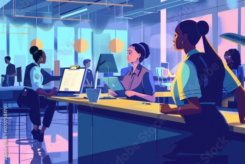 Digital artwork of human resources officers hiring, featuring modern aesthetic and clean lines
