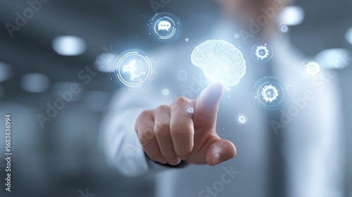 brain, digital, hand, touching, tech, technology, mind, innovative, intelligence, interactive, modern, futuristic, neuroscience, artificial intelligence, interface, idea, concept, creative, smart, connection, network, cognition, information, thinking, virtual, nerve cell, communication, development, analysis, solution, processing, future, system, datum, insight, learning, thought, ability, potential, intellect, research, discovery, mental, wisdom, scientific, study