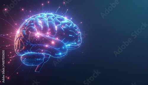 Digital brain visualization showcasing neural connections and AI technology in a vibrant, futuristic design
