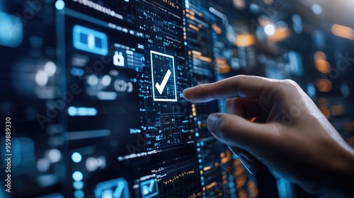 checkbox, checklist, approval, electronic, futuristic, glowing, abstract, technology, bright, design, background, binary, circuit, conceptual, connection, cyber, hardware, horizontal, idea, illuminated, innovation, integrated, luminance, network, processing, program, quality, security, smart, software, success, system, tech, ai, checkmark, three-dimensional, art, computer, computer graphic, illustration, light, microchip, modern, shape, validation, verification, board, datum, digital
