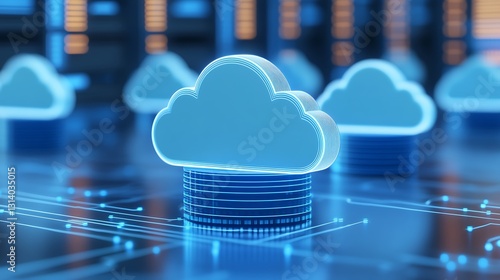 Digital Cloud Storage Concept with Glowing Data Connections and Servers in Modern Technology Environment