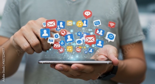 smartphone, connection, communication, icon, digital, technology, networking, sharing, information, app, user, device, hand, holding, person, interaction, cloud, online, cyberspace, message, electronic mail, chat, contact, profile, notification, update, pledging, follow, engage, community, tech, mobile, modern, access, lifestyle, web, alert