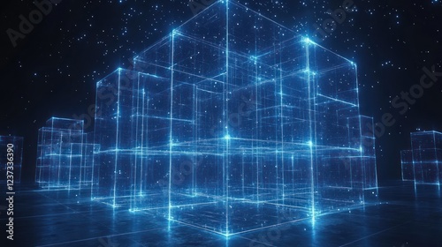 cube, digital, futuristic, glowing, network, datum, technology, abstract, structure, geometric, city landscape, neon, line, blue, light, space, cyber, grid, energy, modern, innovation, graphic, three-dimensional, rendering, science, design, virtual, reality, artificial, intelligence, pixel, sparkling, cosmos, particle, computer, generated, illustration, dark, night, scene
