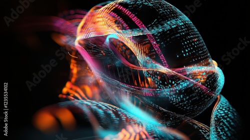 digital, deoxyribonucleic acid, strand, cybernetic, android, side, view, futuristic, technology, artificial, intelligence, science fiction, innovation, genetic, cybernetic, synthesis, evolution, molecular, virtual, high technology, holographic, robotic, interface, transformation, neural, synthetic, biology, cyber, advanced, coding, augmentation, connectivity, abstract, anatomy, structure, tetradic, colours, scheme, glowing, neon, progress, visualisation, hybrid, enhancement, simulation, computing