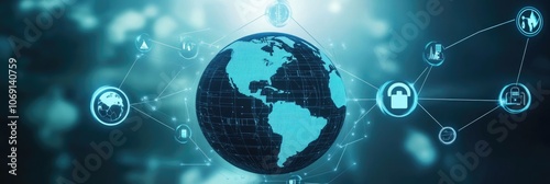 Digital Globe with Medical Equipment Icons Representing Global Healthcare Technology Concept